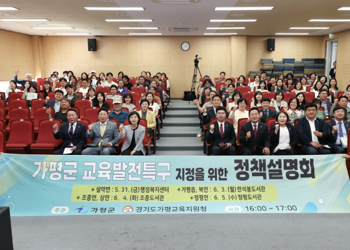 가평군과 가평교육지원청은 3일 조종면 조종도서관에서 ‘가평군 교육발전특구 지정을 위한 정책설명회’를 열고 현황 설명과 함께 군민들의 공감대 형성에 나섰다.