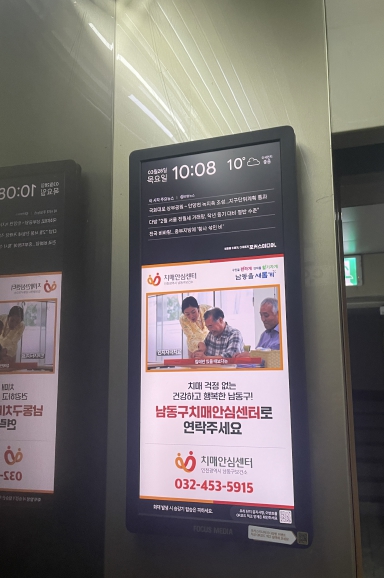 [뉴스서울] 인천시 남동구 치매안심센터는 지역 내 아파트 100개 단지 엘리베이터에 설치된 총 1,440대의 미디어 보드(모니터)를 활용해 치매 지원 사업과 치매 인식개선에 대해 홍보를 실시한다고 9일 밝혔다.