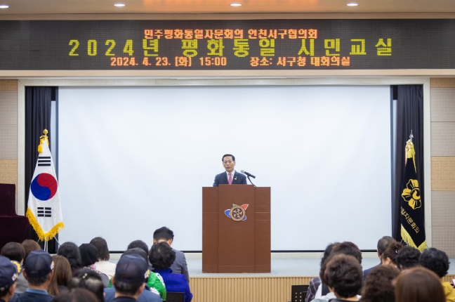 [뉴스서울] 민주평화통일자문회의 인천서구협의회는 지난 23일 서구청 지하 대회의실에서 자문위원, 여성사회단체 회원 및 지역주민, 서구청장, 서구의회의장 등 160여 명이 참석한 가운데 ‘2024년 평화통일 시민교실’을 개최했다.