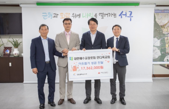 [뉴스서울] 인천 서구는 5월 24일, 대한예수교장로회 안디옥교회로부터 이웃사랑 성금 17,362,000원을 전달받았다고 밝혔다.