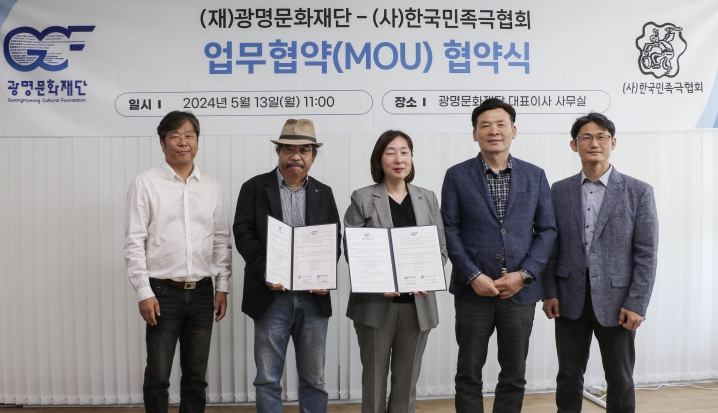 [뉴스서울] (재)광명문화재단은 (사)한국민족극협회와 함께 5월 13일 오전 11시에 광명시민회관 대표이사 사무실에서 '지역 축제 발전을 위한 업무협약'을 체결했다.