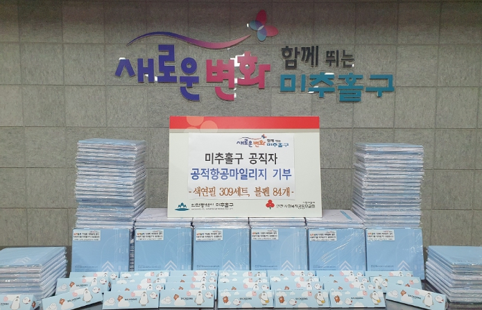 [뉴스서울] 인천 미추홀구는 지난 3일 공무원들의 ‘공적 항공마일리지’로 구매한 385만 원 상당의 색연필 세트와 캐릭터 볼펜 등을 관내 취약계층 아동들에게 기부했다.