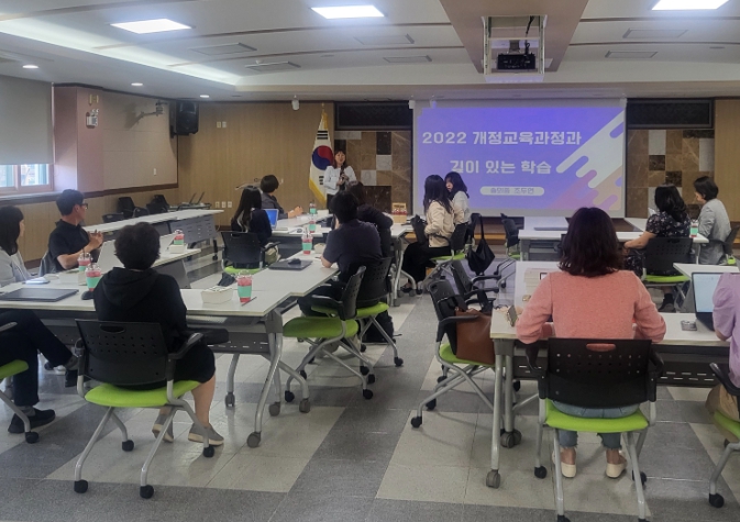 이번 연수는‘2022 개정 교육과정 연계 깊이있는 수업’을 주제로 2022 개정 교육과정 이해, 수업 설계 실습, OECD 미래역량을 키우는 수업철학을 다룬다.