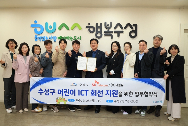 [뉴스서울] 대구 수성구는 25일 SKT/㈜더블유와 디지털 소외 아동을 위한 정보통신기술(ICT) 회선 지원 업무협약을 체결했다.