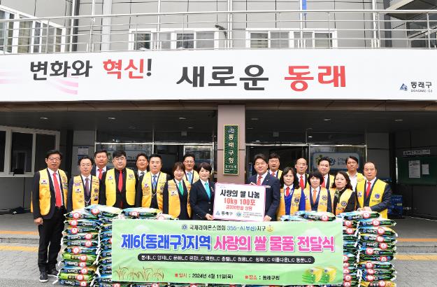 [뉴스서울] 부산 동래구는 지난 11일 국제라이온스협회355-A(부산)지구 제6지역클럽 임원 일동으로부터 저소득 취약계층을 위한 성품(백미100포, 330만 원상당)을 전달받았다고 밝혔다.
