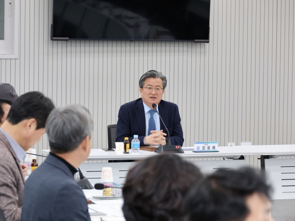 ▲ ‘주요하천 특화계획 수립용역 최종보고회’를 개최한 가운데 정용래 유성구청장이 회의를 주재하고 있다.