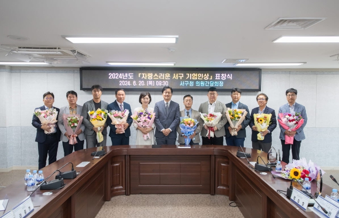 [뉴스서울] 인천 서구는 지난 20일 서구청 의원간담회장에서 관내 기업인의 자긍심 고취 및 사기진작을 위하여 2024년도 상반기 『자랑스러운 서구 기업인상』을 시상했다고 밝혔다. 이번 시상식에는 탁월한 경영능력으로 기업의 경쟁력을 높이고 지역사회발전에 기여한 모범기업인이 선정됐다.