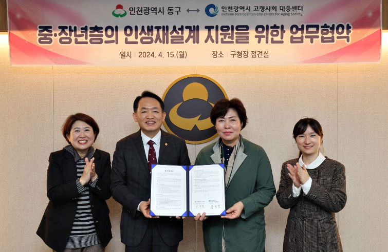 [뉴스서울] 인천 동구는 지난 15일 관내 중·장년층의 인생재설계 지원을 위하여 인천시 고령사회 대응센터와 업무협약을 체결했다고 밝혔다.