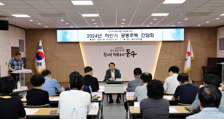 [뉴스서울] 인천 동구는 지난 8월 30일 구청 소나무홀에서 공동주택 단지(의무관리대상 아파트) 입주자대표 및 관리소과 전기차 화재 관련 대응방안 마련을 위한 간담회를 개최했다고 밝혔다.