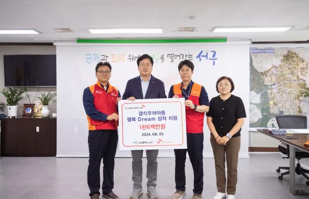 [뉴스서울] 인천 서구는 8월 5일 SK인천석유화학(대표이사 노상구) 천사봉사단으로부터 결식 우려 아동을 위한 ‘행복 Dream상자’ 200개를 전달받았다.