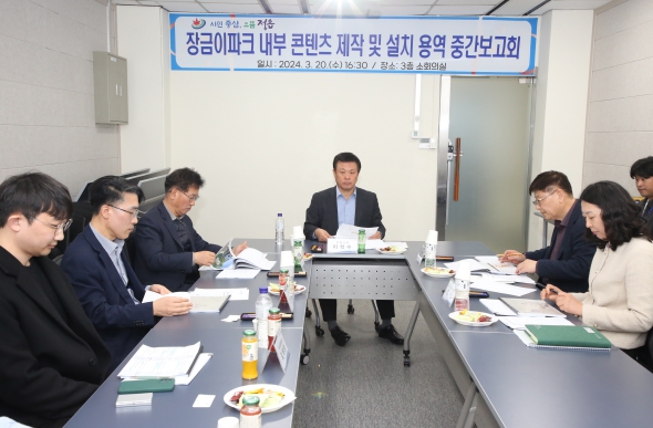 이날 중간보고회는 이학수 시장과 용역사 등 8명이 참석해 장금이파크 전시·체험 프로그램, 편의시설 등 공간별 조성 계획안과 세부 콘텐츠 제작안에 대해 의견을 공유했다.