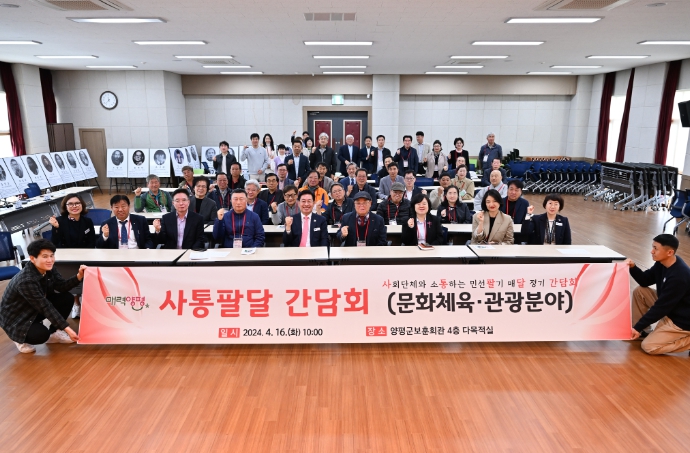 관내 사회단체와의 적극적인 소통을 위해 추진하고 있는 사통팔달 간담회는 ‘사회단체와 소통하는 민선 팔기 매달 정기간담회’의 줄임말로 지역을 대표하는 분야별 사회단체장을 초청해 진행되며, 이번 간담회에는 지역 문화체육과 관광분야의 사회단체장 및 회원 등 70여 명이 참석했다.