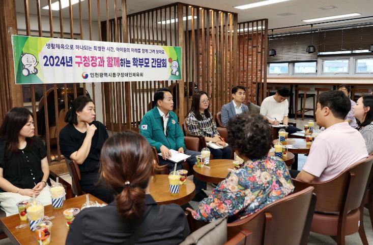 이번 간담회는 여름방학기간 중 장애 학생들에게 생활체육의 기회를 제공하기 위해 인천광역시동구장애인체육회에서 기획한 ‘신나는 여름방학, 부모님과 함께하는 즐거운 체육활동’사업에 참여한 학생 학부모들의 요청으로 개최되었으며, 학부모들과 자유롭게 질의·응답하는 열린 대화의 형태로 진행되었다.