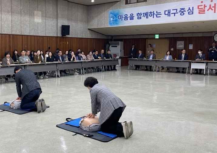 [뉴스서울] 대구 달서구가 오는 23일부터 구청 충무관 및 각 동 회의실에서 달서구 직원 총 1300여 명을 대상으로 약 47회에 걸쳐 응급상황 대처역량 강화를 위한 심폐소생술 교육을 실시한다.