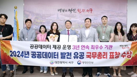 ▲ 대전 서구 2024년 공공데이터 발전 유공 국무총리 표창 수상 사진 |