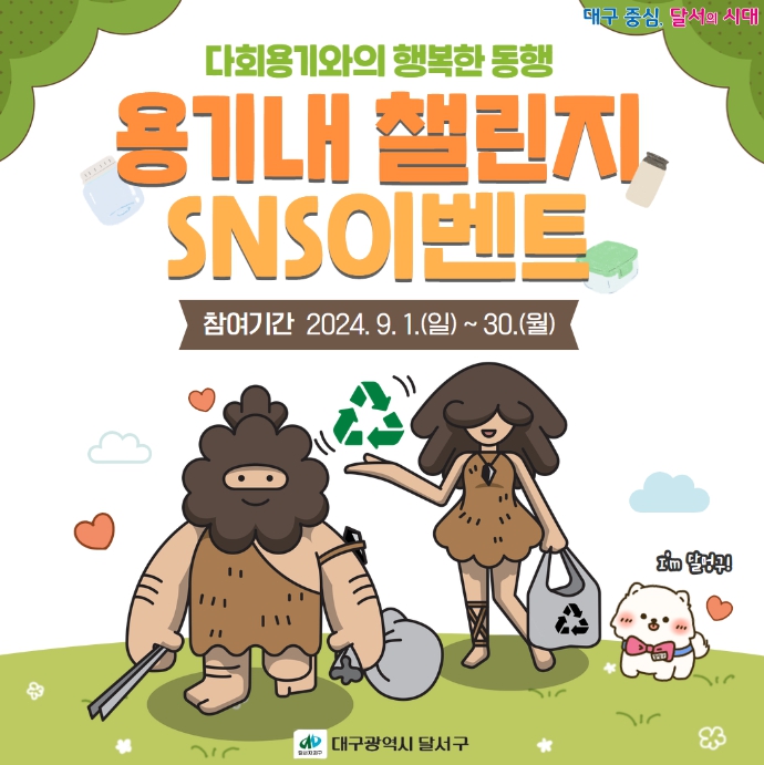 [뉴스서울] 대구 달서구가 9월 한달 간 자발적인 쓰레기감량 문화를 확산하고자 SNS이벤트로'용기내챌린지','싹싹빈그릇챌린지'를 추진한다.