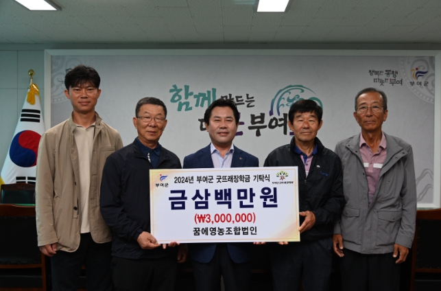 [뉴스서울] 꿈에영농조합법인은 지난 1일 부여군청을 방문하여 인재 육성을 위한 장학금 300만원을 부여군굿뜨래장학회(이사장 박정현)에 기탁했다.