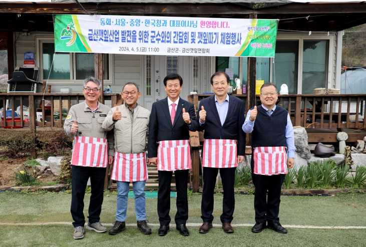 [뉴스서울] 금산깻잎연합회는 지난 5일 금산군 금성면 두곡리 일원 농가에서 서울시 가락동시장도매시장법인과 금산깻잎산업발전 간담회를 개최했다.