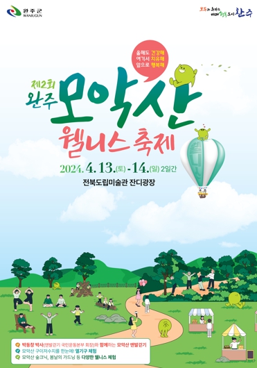 26일 완주군은 오는 4월 13일부터 14일까지 양일간 모악산 전북 도립미술관 일원에서 웰빙, 건강, 행복을 주제로 하는 제2회 모악산 웰니스 축제가 열린다고 밝혔다.