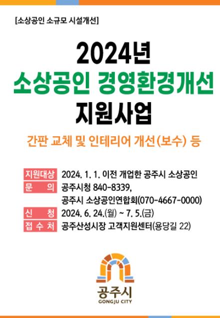 [뉴스서울] 공주시가 관내 소상공인을 대상으로 경영환경 개선 지원사업을 실시한다고 3일 밝혔다.