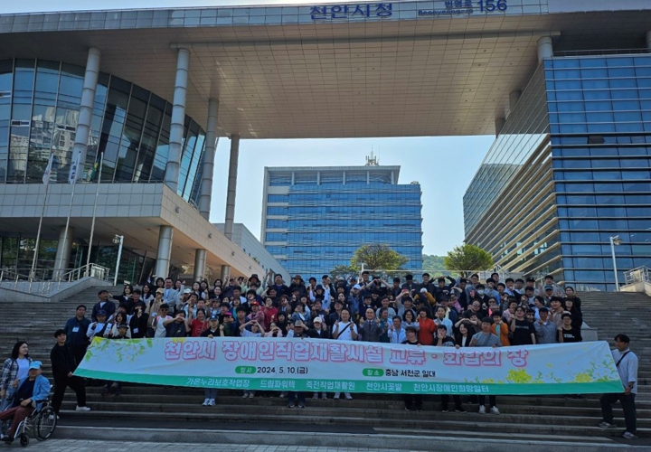 천안시는 지난 10일 천안시장애인희망일터 주관으로 장애인직업재활시설 5개소 이용장애인과 종사자 160여 명이 서천군 일원 등으로 힐링연수를 떠났다고 밝혔다.