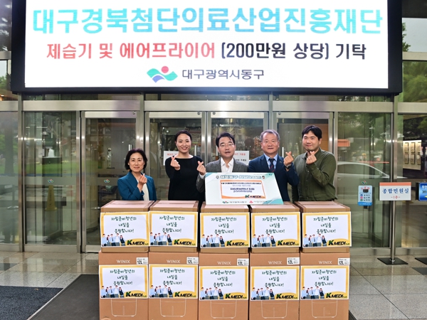 [뉴스서울] 대구경북첨단의료산업진흥재단은 지난 27일 동구청을 방문, 보호시설 종료 후 자립을 준비하는 청년들을 위해 제습기와 에어프라이어(200만원 상당)를 기탁했다.