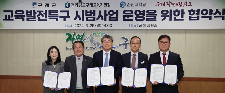 지난 3월에는 김순호 군수를 비롯한 구례교육지원청 교육장, 군의회의장, 구례군 관내 교육 관계자와 기업 관계자 등 15명이 참석한 가운데 교육발전특구 시범지역 지정 공모를 위한 사전 업무협의회가 열렸다.