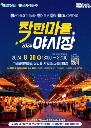 [뉴스서울] 광주광역시 서구 풍암동에 늦여름 밤을 환하게 밝혀줄 ‘착한마을 야시장’이 열린다.