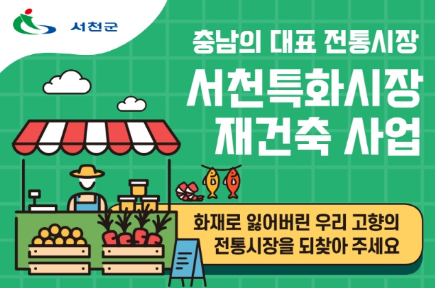 앞서 이번 사업은 행정안전부에서 발굴한 8개 지자체, 11개 지정기부 선도 사업에 선정돼 컨설팅과 홍보 지원을 받았으며, 이번 시행으로 국민들도 서천특화시장의 복구를 응원하고 지원할 수 있게 됐다.