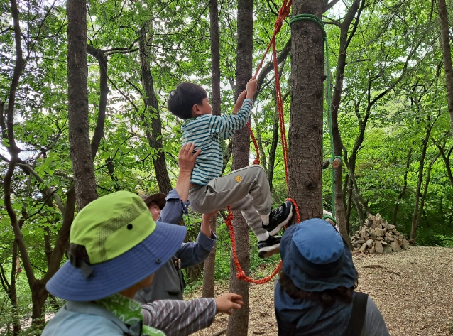 밧줄을 활용한 준비운동을 시작으로 조별로 숲 해설가 선생님들과 함께 앞산을 거닐며 자연물 빙고 게임, 스피드 거미줄, 버마다리/밧줄 사다리 건너기, 가족 소원지쓰기 등 다양한 숲 탐험 프로그램을 즐겼으며 이날 숲 탐험 후에는, 숲 탐험 활동을 하며 촬영한 즉석 가족사진과 채집한 여러 자연물을 활용하여 가족사진 연필꽂이 만들기를 하며 즐거운 시간을 보냈다.