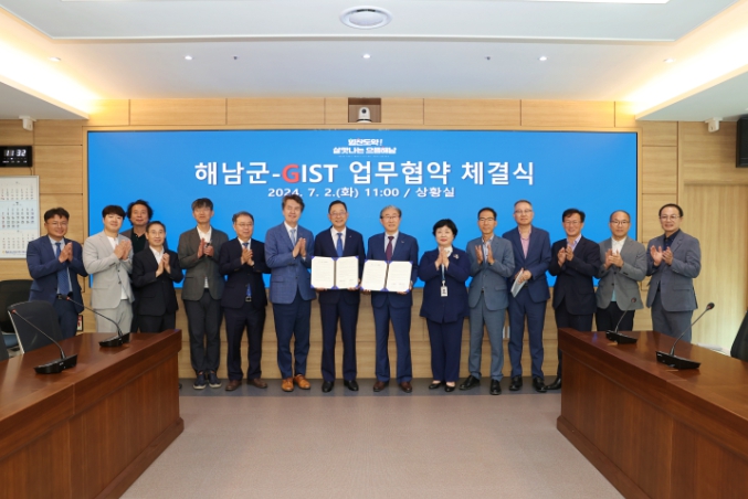 명현관 해남군수와 임기철 GIST 총장 등 관계자 20여 명이 참석한 가운데 열린 협약식에서 양 기관은 공동협력을 확대해 인공지능(AI), 로봇 등 첨단과학기술분야 지역특화산업 육성과 지역인재 양성에 적극 노력해 나가기로 했다.