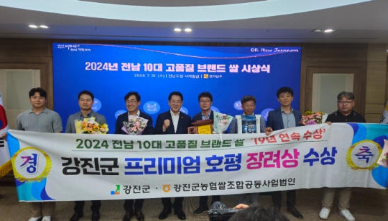 [뉴스서울] 강진군은 전라남도가 주관하는 ‘2024년 전남 10대 고품질 브랜드 쌀' 시상식에서 강진군 ‘프리미엄 호평’이 장려상을 수상하고 1,000만원의 인센티브 사업비를 확보했다고 밝혔다.