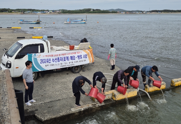 [뉴스서울] 서천군이 지난 27일 어촌계, 어업인 단체 등 관내 어업인이 참여한 가운데 어족자원 기반을 조성하고 보호 의식을 고취하고자 마서면 송석항 및 죽산항과 서면 홍원항 인근 연안에 꽃게 종자(갑폭 1cm)를 방류했다.