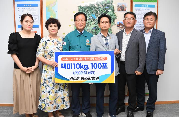 [뉴스서울] 완주영농조합법인이 지난 7일 완주군에 수해 주민들을 돕기 위해 250만 원 상당의 백미 10kg, 100포를 기탁했다.