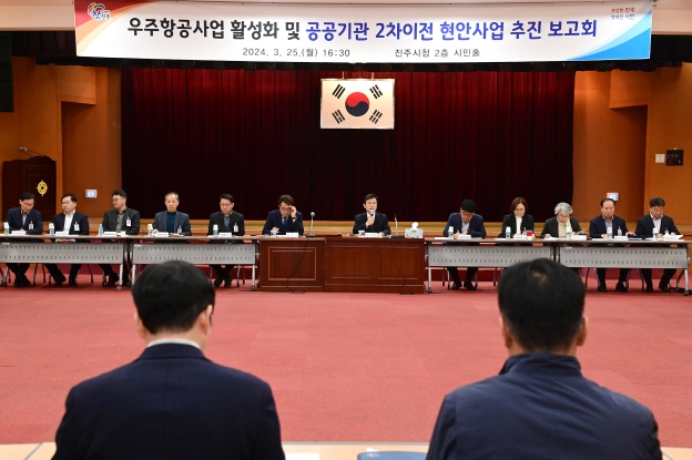[뉴스서울] 진주시는 지난 25일 시청 2층 시민홀에서 우주항공사업 활성화 및 공공기관 2차 이전 대비 부서별 추진사업에 대한 업무보고회를 개최했다.