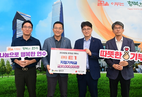 [뉴스서울] 연수구는 친환경 에너지 기업인 ㈜E1(인천기지장 손민익)으로부터 지난 14일 저소득가정 아동을 위해 써달라며 후원금 3천만 원을 전달받았다.