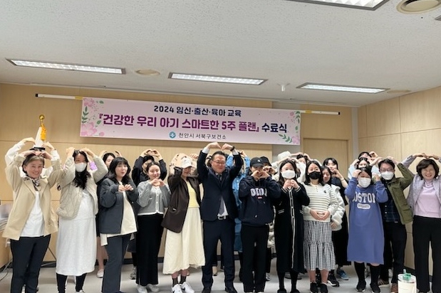[뉴스서울] 천안시 서북구보건소는 지난 3일 ‘제1기 건강한 우리 아기 스마트한 5주 플랜’이라는 주제로 임신·출산·육아교실 수료식을 가졌다.
