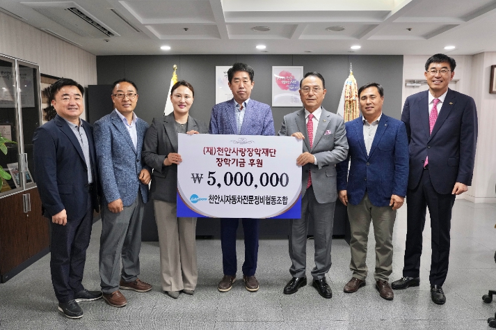 [뉴스서울] 천안시자동차전문정비협동조합(이사장 권진우)이 21일 지역인재 육성과 도움이 필요한 학생을 위해 장학금 500만 원을 천안사랑장학재단(이사장 박상돈)에 기탁했다.