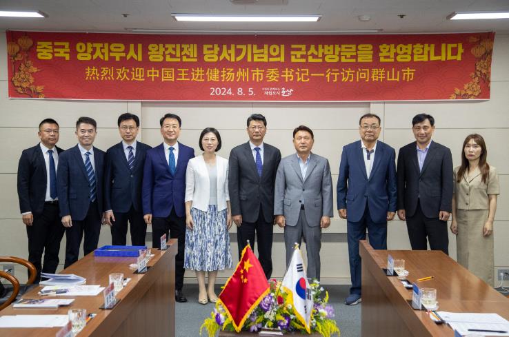 강임준 군산시장은 “올해 들어 두 번째로 군산시를 찾아준 양저우시 대표단에 감사드리며, 다가오는 2025년 6월 양 도시 우호도시 체결 10주년을 위한 긴밀한 교류협력이 지속되길 바란다”면서 “아무쪼록 양저우시의 우수한 기업이 군산새만금산업단지에 진출하기를 기대한다”고 밝혔다.