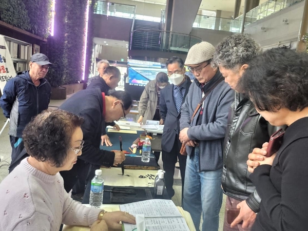 지난 2일 천안시청 로비에서 열린 첫 서예 행사에는 많은 시민들이 참여하며 뜨거운 반응을 보였다.