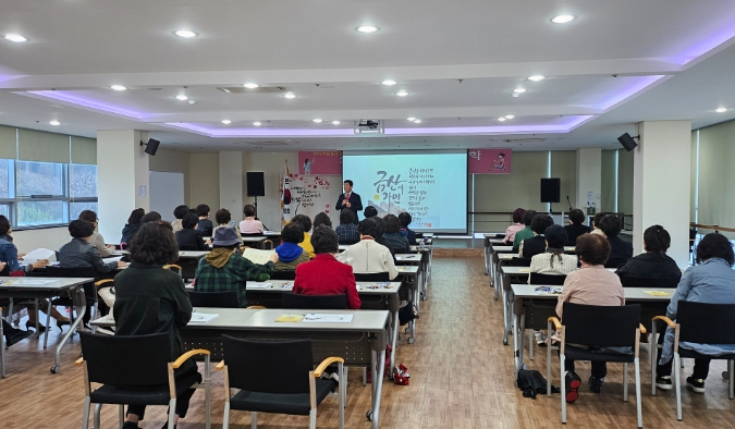 ▲ 박범인 금산군수 금산군 제4기 금산여성대학 특강 모습 |