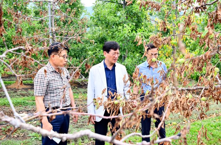 최훈식 군수는 “사과 고품질 안정생산을 위해 여름철 장마대비 과원관리가 매우중요하다”며 “지속적인 예찰과 적기방제를 통해 병해충 피해를 최소화할 수 있도록 힘써달라”고 당부했다.