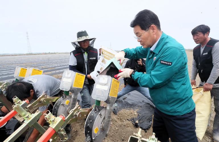 [뉴스서울] 권익현 부안군수는 본격적인 농번기를 맞아 지난 17일 백산면 금판리 논콩 파종 현장을 방문해 농가를 격려하고 농민들과 소통의 시간을 가졌다.