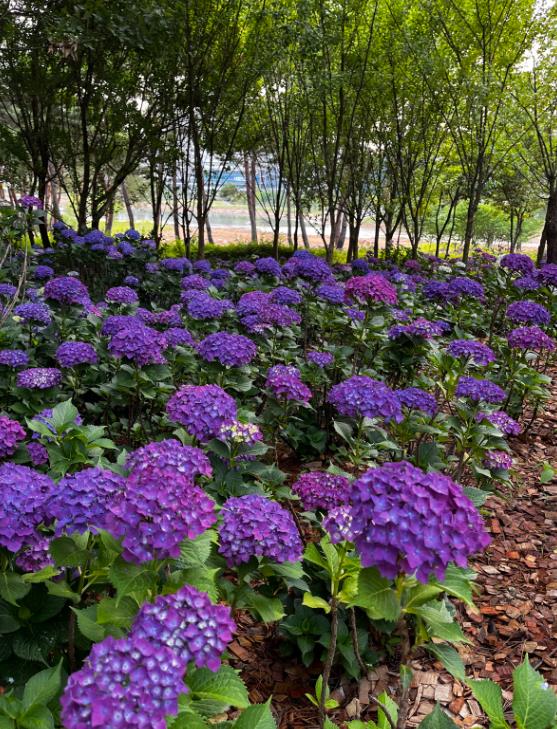 수국을 포함해 대규모 꽃단지들은 대부분 외곽지역에 위치하고 있는 반면 혁신도시 한복판인 빛가람호수공원 일원에 1만여 주의 수국이 식재돼있어 눈길을 끈다.