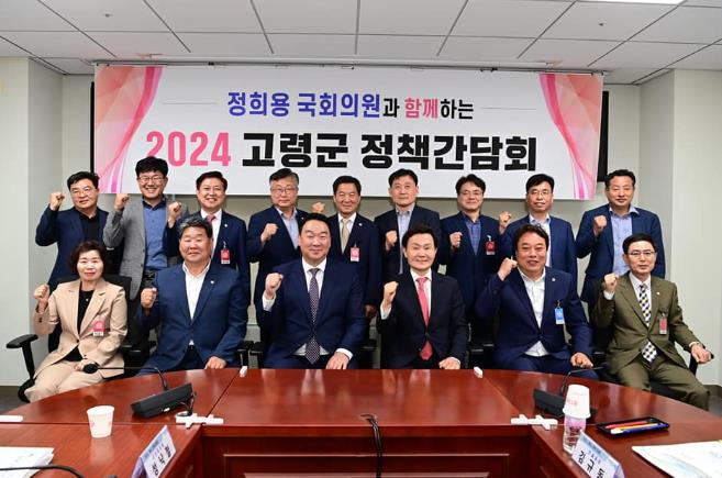 정희용 국회의원과의 2024년 고령군 정책간담회에서는 내년도 국비 확보를 위한 전략적 방안을 모색함은 물론, 군정 주요 현안에 대한 실질적인 해결책을 함께 강구 하였으며, 특히, 지난해 ‘지산동 고분군 세계유산 등재’와 올해 초 ‘달빛철도 건설을 위한 특별법 통과’로 인하여 지역의 새로운 변화가 예고된 시점에서고령이 중점 추진해야 할 주요 건의사업을 설명한 뒤, 적극적인 예산 지원과 협조를 요청하였다.