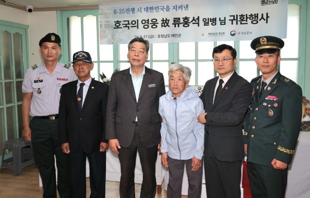 충남 태안군에 따르면, 국방부 유해발굴감식단은 17일 故 류홍석 일병의 유가족이 거주하는 안면읍 승언리를 찾아 류 일병의 유품을 여동생 류영순(86) 씨에게 전달하는 ‘호국의 영웅 귀환 행사’를 개최했다.