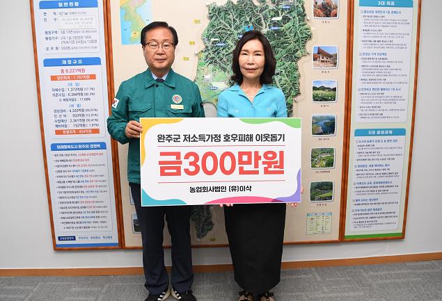 [뉴스서울] 농업회사법인(유)이삭이 완주군에 수해 주민들을 돕기 위해 성금 300만 원을 기부했다.