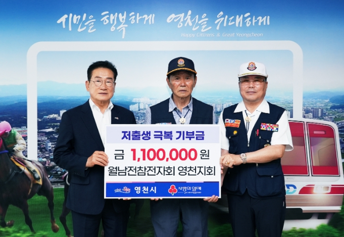 박석만 월남전 참전자회 영천지회장은 “저출생 극복을 위해 회원들의 자발적인 참여로 성금을 모았다.”며 “적은 금액이지만 영천의 미래를 밝히는 큰 힘이 되길 바란다.“고 소감을 전했다.