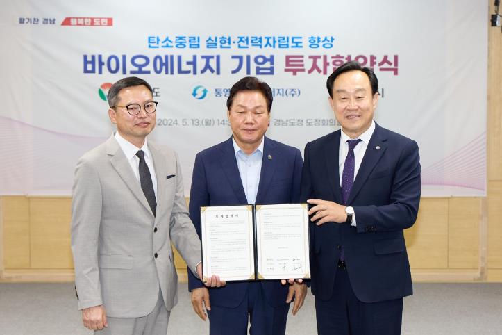 이번 협약에는 경상남도 박완수 도지사, 통영시 천영기 시장, 통영바이오에너지㈜ 채수백 대표가 자리해 협약을 맺고 상생협력의 근거를 마련했다.