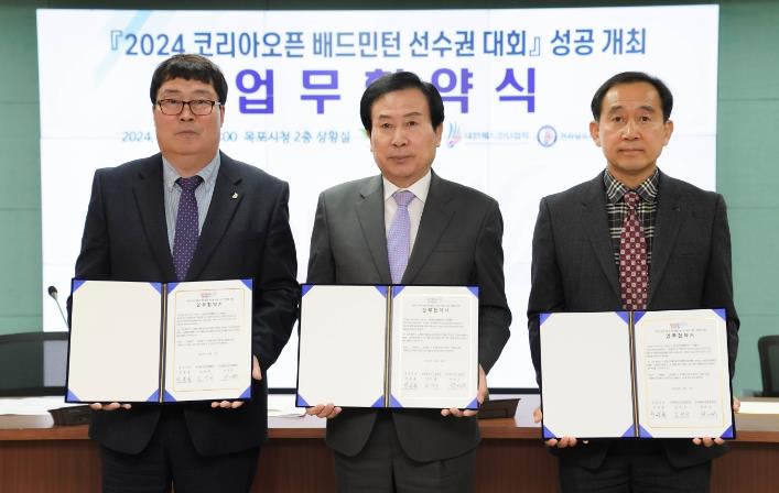 [뉴스서울] 목포시는 지난 3일 2024 코리아오픈 배드민턴 대회 개최를 위해 3자(목포시·대한배드민턴협회· 전남배드민턴협회)간 업무협약을 체결했다.